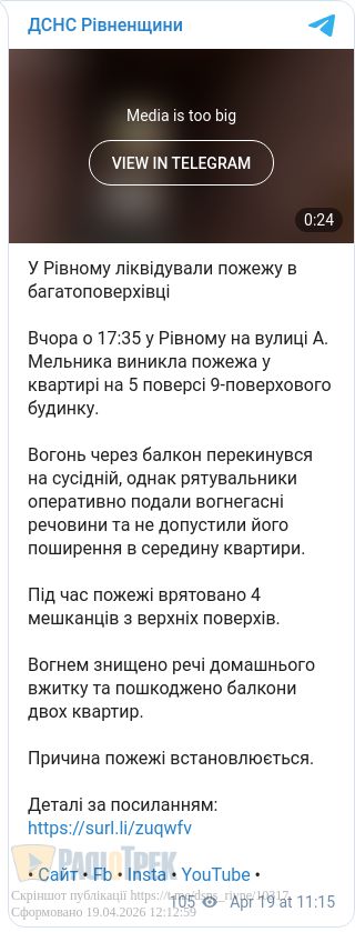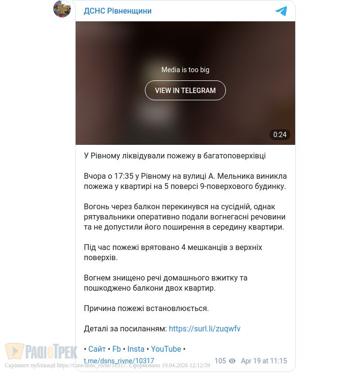 Серйозна пожежа сталася у багатоповерхівці у Рівному цими вихідними. Займання було на вулиці Андрія Мельника у квартирі на п’ятому поверсі.