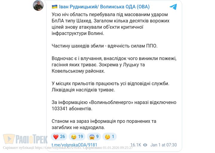 Усю ніч сусідня Волинь перебувала під масованим ударом БпЛА типу Шахед.