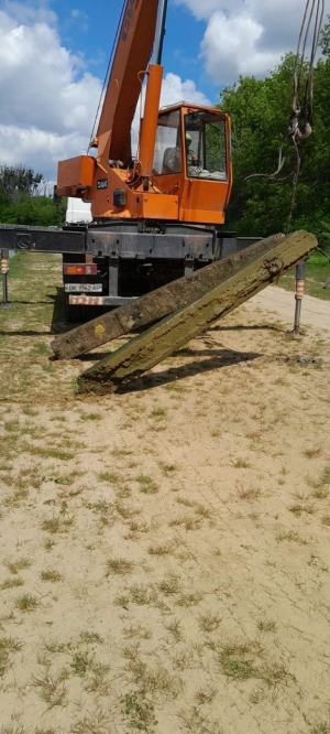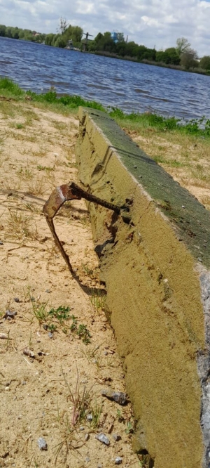 На фото ви самі можете побачити, яке залізяччя стирчало догори. Підняти цю бетонну частину, що відвалилась від берегової конструкції, допомогли комунальники з Тресту зеленого господарства. Після цього водолази завершили кількаденну роботу з очищення дна біля міського пляжу.