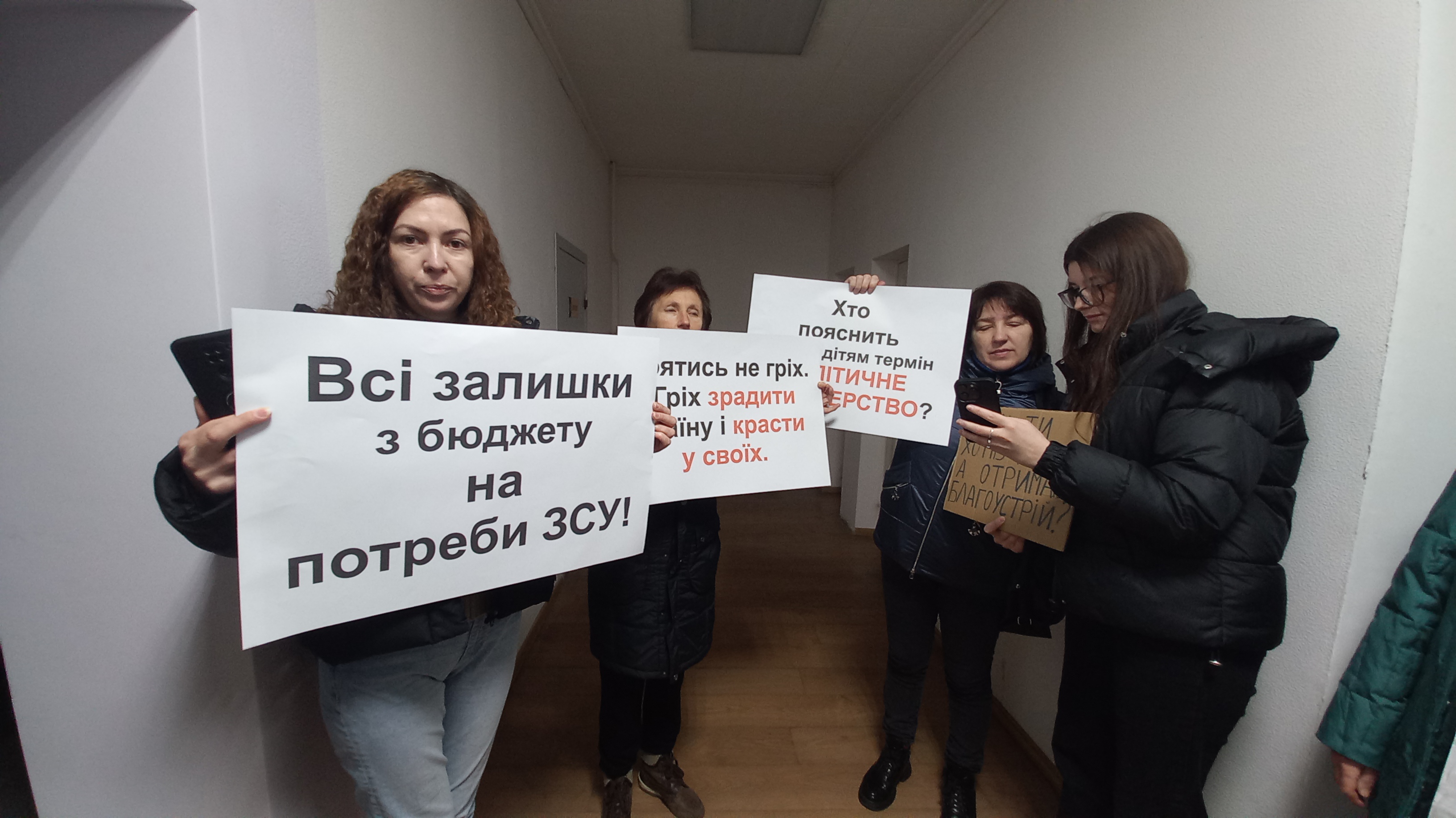 Група рівнянок перед засіданням прийшли нагадати депутатам, щоб ті більше коштів спрямовували саме на підтримку військових – зокрема, бюджетні залишки.